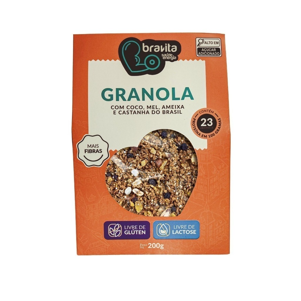 Ingredientes: proteína texturizada de soja, açúcar mascavo, mel, castanha-do-brasil, ameixa sem caroço, amendoim, flocos de arroz, flocos de milho, uva passa, gergelim, coco seco em flocos e linhaça.
