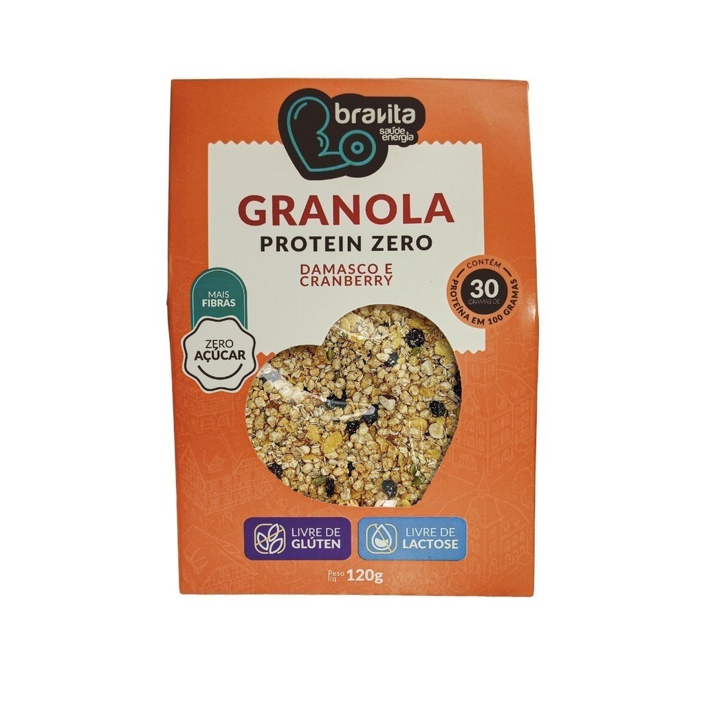 Ingredientes: Proteína extrusada de ervilha 70%, aveia grossa flocos, damasco desidratado, flocos de milho, cranberry, quinoa branca em flocos, xarope de Ismaltoligossacarídeo de tapioca, pepitas de girassol, castanha do brasil, pepitas de abobora.